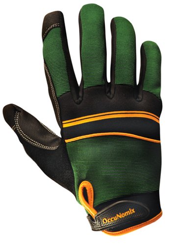 Form fitted design, comfortable for shipping, receiving or delivery personnel. Super tacky rubberized fingertips and palm. Polyurethane reinforced web area for better grip and wear life. Reinforced finger sidewalls, heavy-duty stretch nylon for snug fit. Machine washable Clarino. Hook & loop wrist closure with thumb design pull tab. Neoprene knuckles with reflective piping.