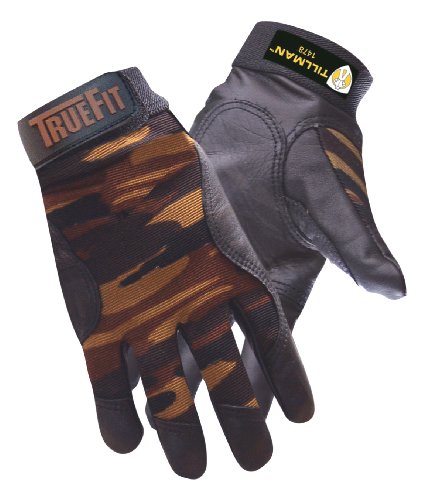 A high-dexterity, performance glove in a sweet camouflage design. Choose TrueFitTM when fit, comfort and performance are paramount.* Elastic cuff with hook and loop closure provides secure fit, less bulk.* Top grain leather side bolsters add additional protection for side surface work.* All finger tips covered in leather for heavy wear area protection.