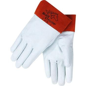 Black Stallion 24K Premium Grain Kidskin TIG Welding Gloves - Short Cuff Mfg# 24K Features: * Excellent fit and feel for precision * 2.5 inch cowhide leather protective cuff * Stitched with flame-resistant Kevlar Size: Large